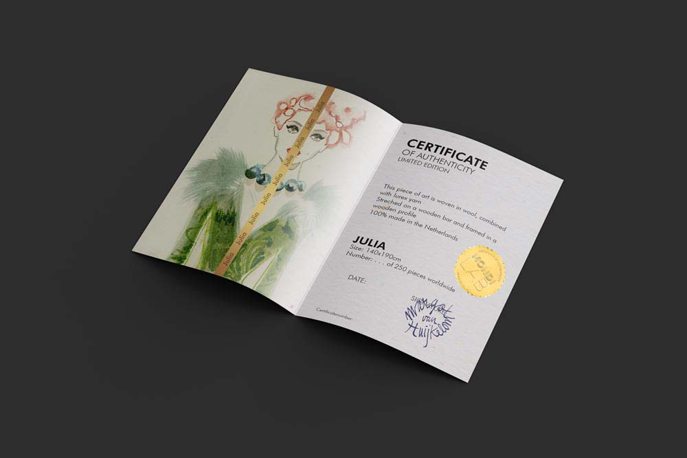 Haute Couture artwork woven in wool and stretched on a wooden frame.